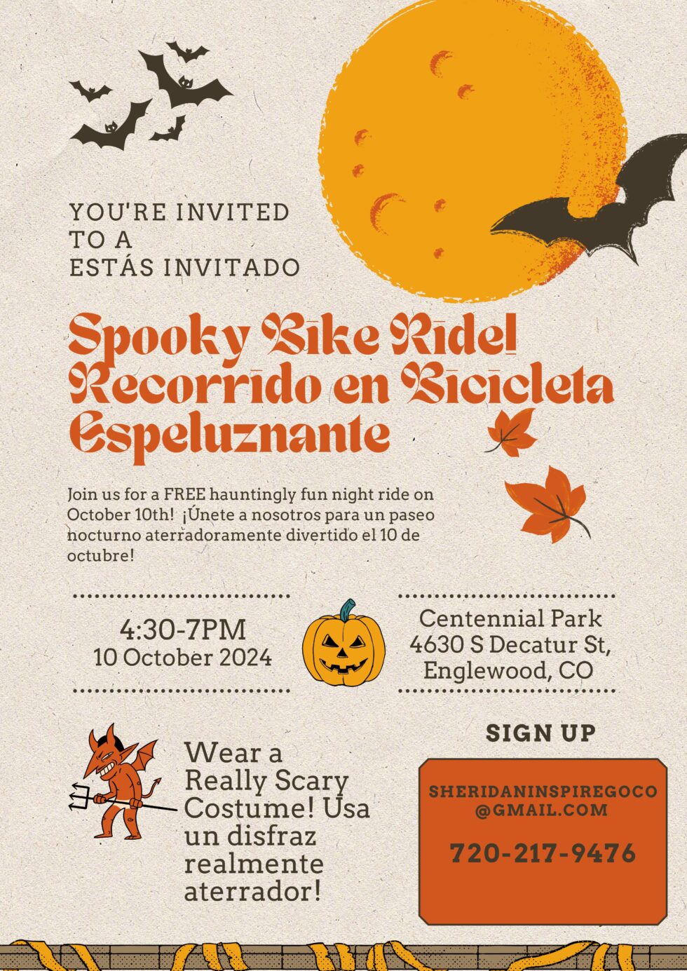 Throw on some costumes, and bring your family out to Sheridan Inspire Coalition’s Spooky Ride next week! We’ll ride together along the South Platte and stop by trick-or-treat tables hosted by Groundwork Denver and other great organizations.